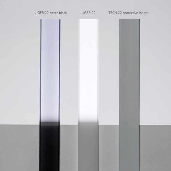 Dank der schwarzen Abdeckung für LED-Profilleisten und Alu-Profile lässt sich ein flächiger / gleichmäßiger Lichteffekt von der Lichtquelle erzielen. Beim Projektieren einer Beleuchtung sollte dann die eingeschränkte Lichtdurchlässigkeit berücksichtigt werden. Die Diffusion des Lichts durch die schwarze Abdeckung LIGER-22 reduziert den Blendungsgrad und beugt so einer übermäßigen Ermüdung der Augen vor. Ihre Verwendung empfehlen wir auch aus folgenden Gründen: