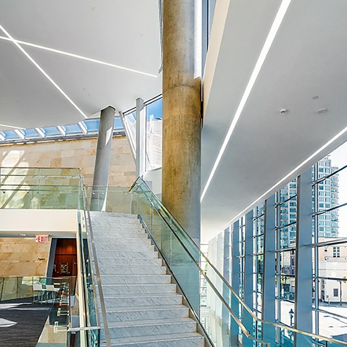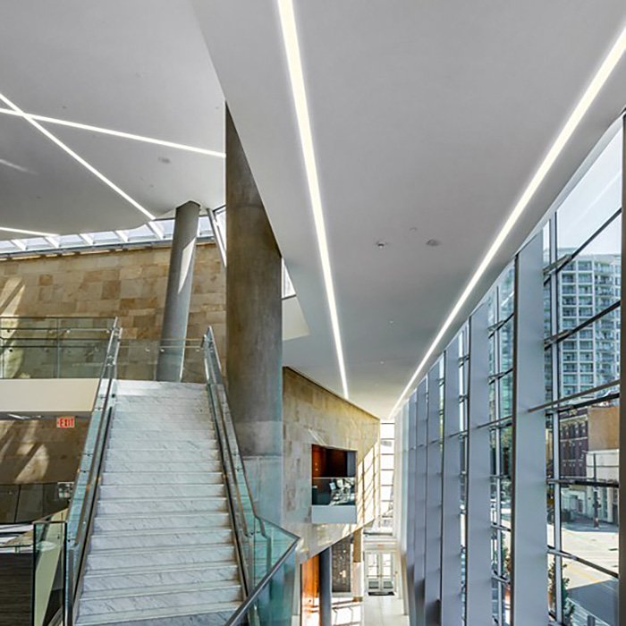 - Möglichkeit des Erzielens einer schmalen Beleuchtungslinie in einer abgehängten Decke ohne sichtbaren Rahmen.