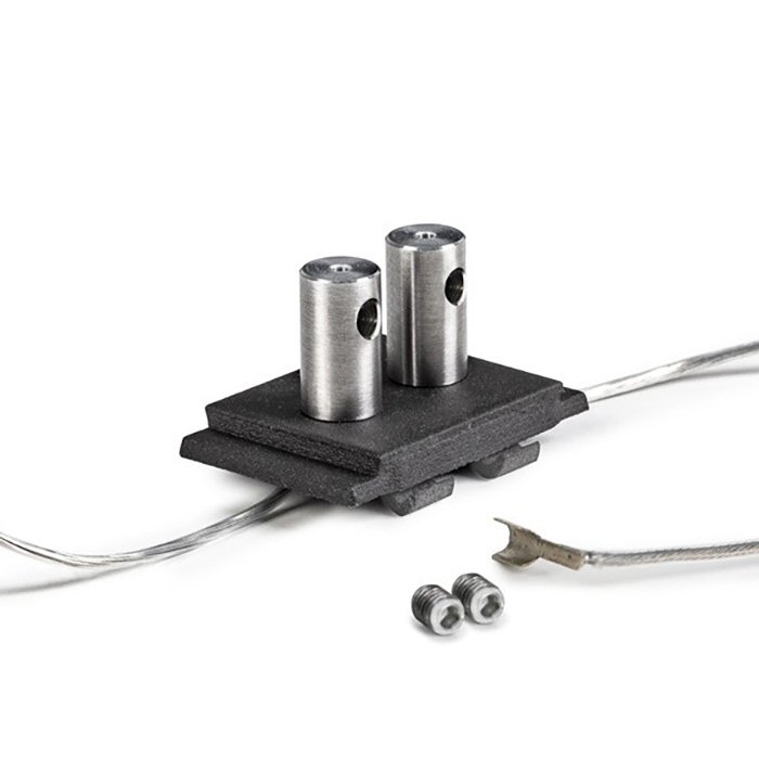 - Die Länge des Stahlseils kann durch Kürzen angepasst werden. Fixierung des Seils im Befestigungselement mithilfe einer Inbusschraube.