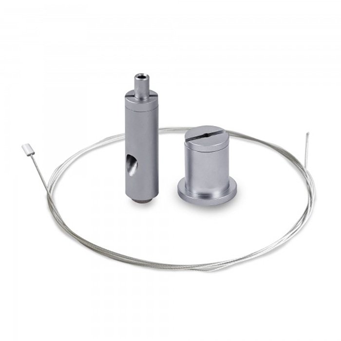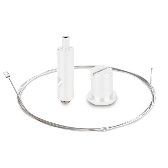 Das Aufhängeset für ALU-Leisten und Profile RD-1 bietet eine ausgewogene Kombination von Funktionalität und ästhetischem Design. Es ermöglicht die Fertigung von horizontal abgehängten Leuchten in kleinen Serien mithilfe von ALU-Profilen, die das Aufhängesystem ZM (Montageschiene - kleines Schloss) unterstützen. Die individuelle Fertigung von Leuchten mit einer Aufhängung mittels eines Stahlseils (1,5m Seil im Lieferumfang enthalten) bietet Freiheit beim Designen der Leuchten und deren Unterbringung im Raum, ohne dass dadurch der ästhetische Eindruck beeinträchtigt wäre.