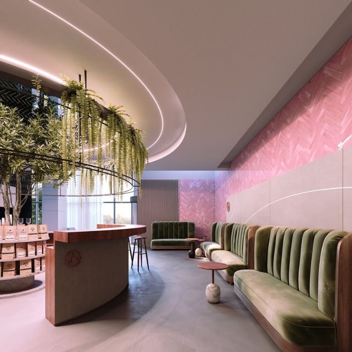 - lineare Beleuchtung in einer abgehängten Gipskartondecke mit der Möglichkeit der individuellen Formung - Beleuchtung in abgehängten Gipskartondecken und Bereichen in Form von linearem Licht mit polygonalen Formen.