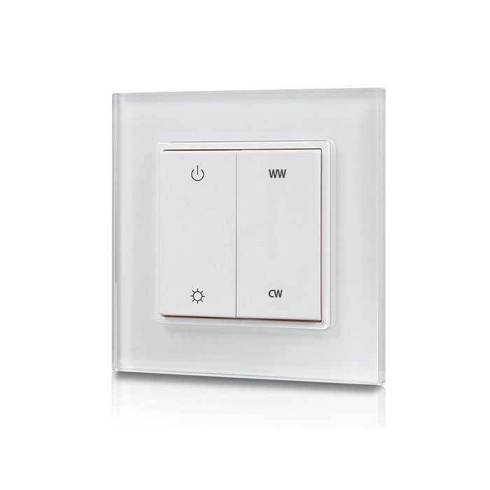 Der Funk CCT-Wandtaster mit der Bezeichnung SR-2833K-CCT stellt eine modulare Lösung für das Steuern der Chromatizität von CCT LED-Streifen dar. Mithilfe eines Funksignals und eines kompatiblen #tablink#stmivace#Dimmers, Controllers oder Schalters## können Geräte von einem beliebigen Ort in Reichweite des Funksignals gesteuert werden. Somit trägt sie zur Steigerung des Nutzerkomforts, zur Verbesserung der Steuerungsflexibilität und zum Stromsparen bei. Die Wand-Funkfernbedienung für CCT LED-Streifen SR-2833K-CCT ist ein Produkt des weltweit renommierten Herstellers von Systemen für die Beleuchtungssteuerung Sunricher. Dieses Unternehmen ist ein bei der Fach- und der breiten Öffentlichkeit anerkannter Anbieter innovativer Lösungen mit einem besonderen Augenmerk auf die Produktqualität, was ihn zu einem weltweit bevorzugten Partner für Profis im Bereich Beleuchtung macht.