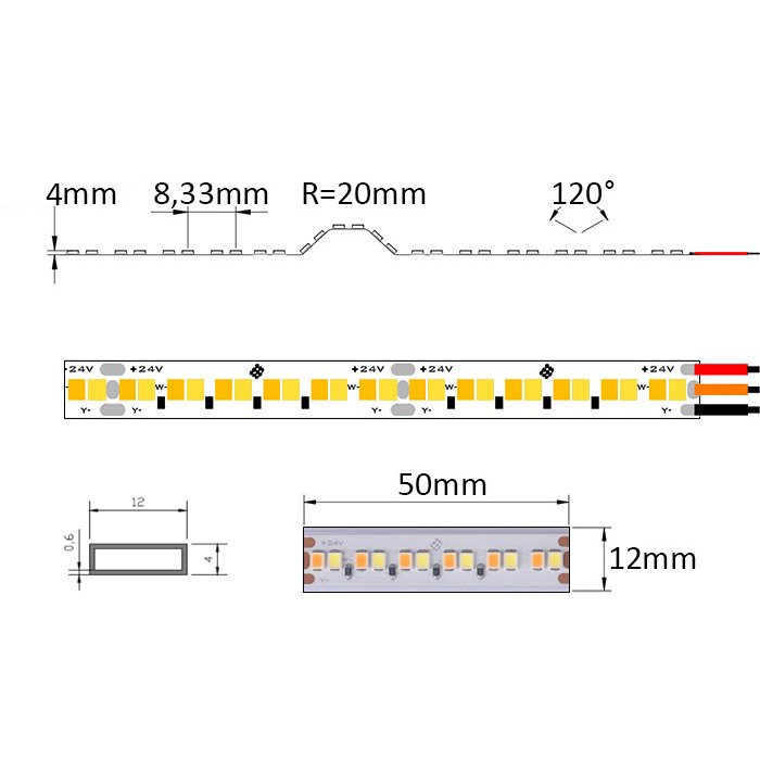 CCT LED Streifen 24V Lux Miners IP65 | 24W | 240LED | CRI90+