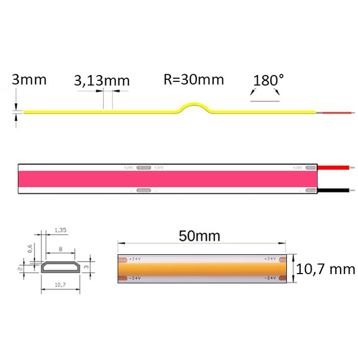 COB LED Streifen pink 24V Lux Miners | IP65 | 10W | 480LED