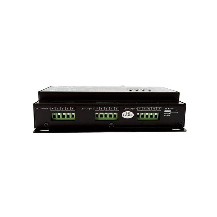 Der 12CH DMX512 Controller für LED-Streifen mit der Bezeichnung SR-2108B-M12-5 ist eine ideale Lösung für eine moderne und effektive Steuerung von einfarbigen, CCT-, RGB- oder RGBW-Leuchten mithilfe eines DMX512-Protokolls. Die 12 PWM-Kanäle mit einer gemeinsamen Anode können als 1CH (Kanal) oder 12CH (Kanäle) eingestellt werden.
