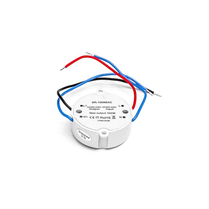 Der Funkdimmer für LED-Lampen 230V mit der Bezeichnung SR-1009SAC ist ein erstklassiges elektronisches Produkt für das Dimmen von Leuchten, LED-Birnen und weiteren Geräten. Er ermöglicht den Anschluss herkömmlicher Tastenschalter mithilfe einer PUSH-DIM Stromschiene oder einer Verbindung mit kompatiblen #tablink#ovladace#Fernbedienungen## mithilfe eines Funksignals. So können Sie LED-Leuchten, Glühbirnen und weitere Geräte einfach von einem beliebigen Ort in Reichweite des Funksignals aus steuern. Der RF-Dimmer 230V SR-1009SAC unterstützt das Trailing Edge Dimming (Phasenabschnittdimmen). Die modernen Funktionen und die fortschrittlichen elektronischen Elemente ermöglichen zudem die Einstellung einer minimalen Helligkeit der Beleuchtung. Ein Vorteil ist auch seine Miniaturgröße mit der Möglichkeit der Montage in einer Unterputz-Anschlussdose KU68.
