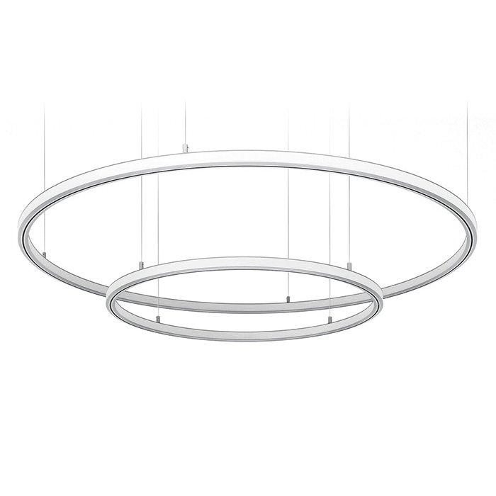 Die runde LED-Deckenleuchte mit der Bezeichnung CIRCA-H-1 zeichnet sich durch ein einzigartiges Design mit einem Doppelring (Ø 54 cm + Ø 88 cm) aus, der Licht in zwei Richtungen ausstrahlt: ins Innere des Rings wie auch an seinem äußeren Rand. Ihre einzigartige Ausführung mit der Möglichkeit der Individualisierung sorgt für Harmonie zwischen Funktion und Ästhetik. Die LED-Ring-Deckenleuchte ist ideal für Bereiche, wo Wert auf eine kreative Beleuchtung und eine raffinierte Optik gelegt wird.