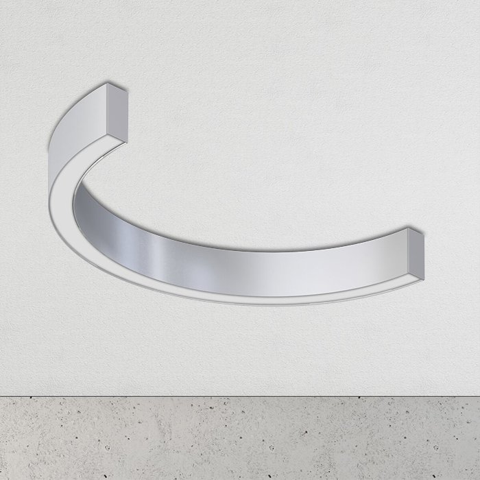 Die halbrunde LED-Leuchte KLUŚ SERPENT R-PLUS NT 1/2 mit einem Radius von r=400mm kann als eigenständige aufgesetzte Leuchte oder als Bestandteil eines Beleuchtungssystems für die Fertigung individueller Leuchten polygonaler Formen verwendet werden. Sie bietet eine hohe Lichtausbeute mit einem Wert von CRI 90+ für eine getreue Farbwiedergabe, ein minimalistisches Design und eine erstklassige Produktverarbeitung, die für eine lange Lebensdauer sorgt. Die verwendeten Materialien mit einem geringen CO2-Fußabdruck sind umweltfreundlich und helfen bei der Schaffung nachhaltiger Bauten. Dank der hohen Modularität ist dieses System ideal für umfangreiche Projekte, wo individuelle Anforderungen an die Länge, die Form oder die Verteilung der Lichtquellen zu respektieren sind.