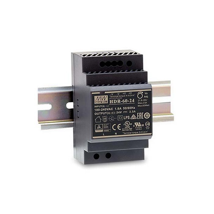 Sie prädestinieren sich auch als ideale Stromversorgung für 24V LED-Streifen in professionellen Beleuchtungsanlagen, bei denen sich das Netzteil Mean Well HDR-60-24 auf der Hutschiene in der elektrischen Verteilung befindet, sowie auch andere Steuerelektronik.