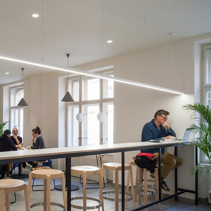- Lineare Deckenbeleuchtung - in Form einer abgehängten oder aufgesetzten leistungsstarken Leuchte.