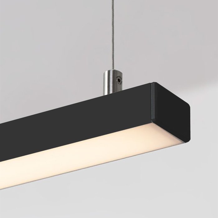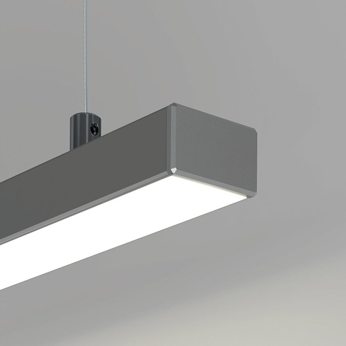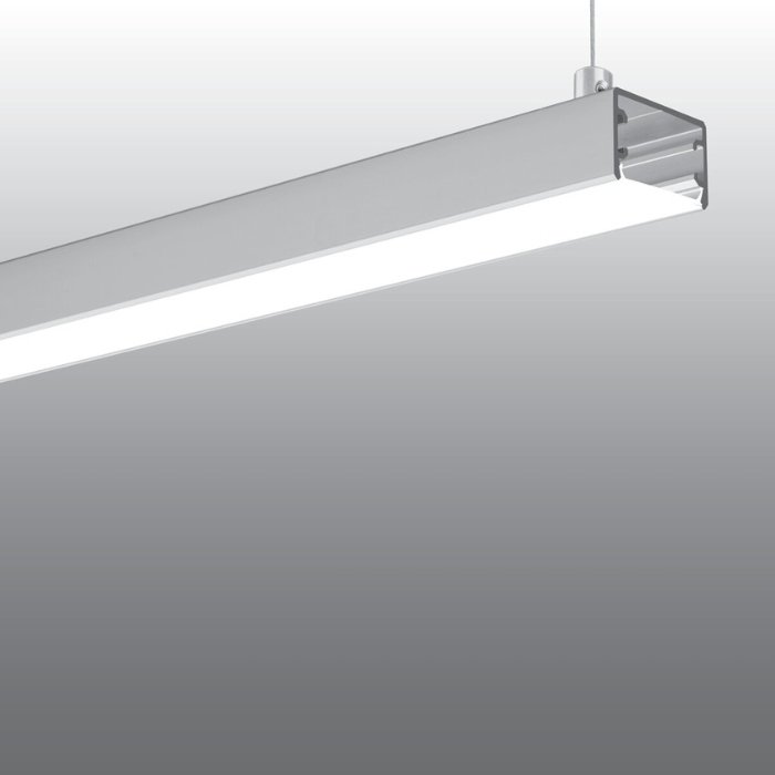 - Lineare Beleuchtung mit polygonalen Formen - in Form einer abgehängten oder aufgesetzten leistungsstarken Leuchte.