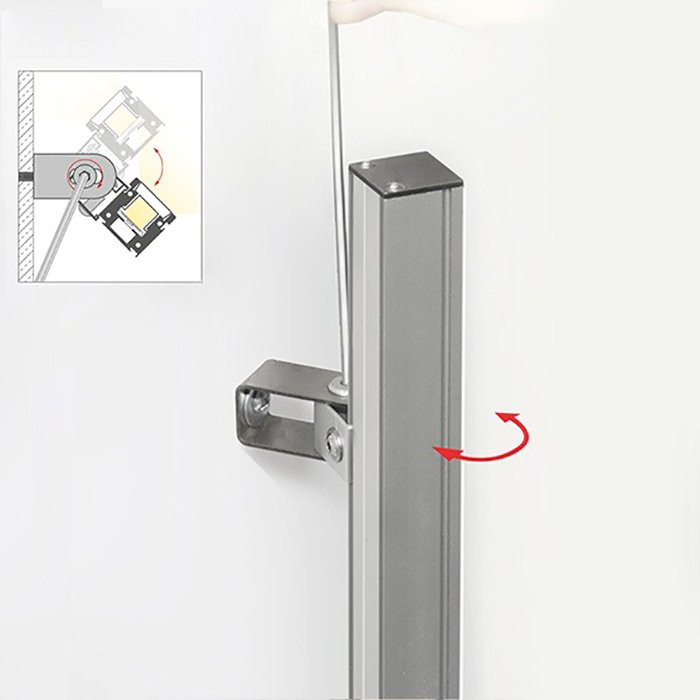 - Aufsetzens auf eine Oberfläche in horizontaler oder vertikaler Richtung - einfache Montage an einer Oberfläche mithilfe von Montagezubehör mit der Möglichkeit einer stufenlosen Einstellung des Abstrahlwinkels.