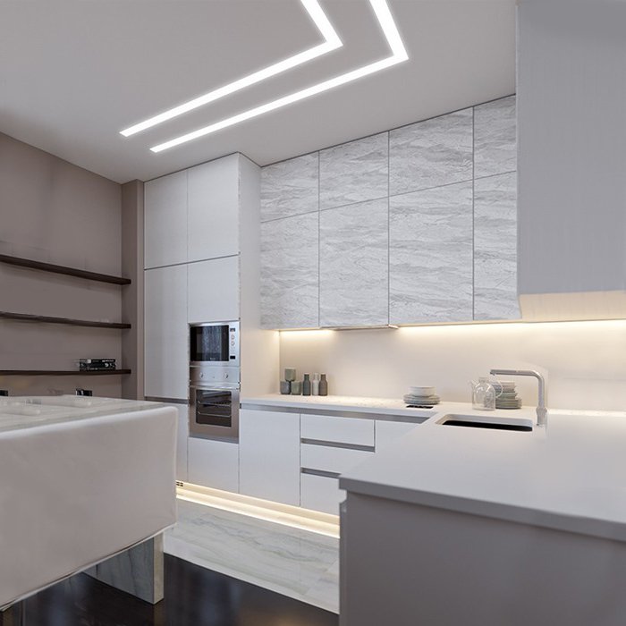 - Möglichkeit der Schaffung einer Lichtlinie in einer abgehängten Decke ohne sichtbaren Rahmen.