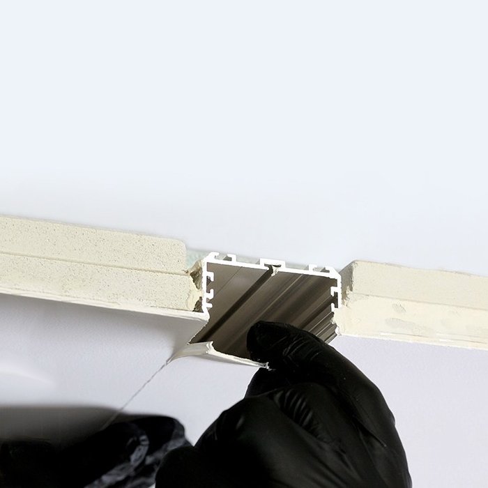 Die Fertigung einer Beleuchtung in einer abgehängten Decke mithilfe des LED-Einbauprofils für Trockenbau KOZEL-50 erfordert entsprechende technische Erfahrungen, Geschick und die notwendige Ausstattung. Bei der Montage und dem Einbau eines Profils in eine abgehängte Decke sind auch Fachkenntnisse für die Arbeit mit Gipskarton erforderlich und somit handelt es sich vor allem um ein Produkt für Profis und Montagefirmen. Das beigefügte #tablink#videa#Anleitungsvideo## zeigt das empfohlene Vorgehen bei der Montage in Gipskarton. Neben den oben genannten allgemeinen Hinweisen fügen wir noch einige spezifische Empfehlungen für die Montage an: