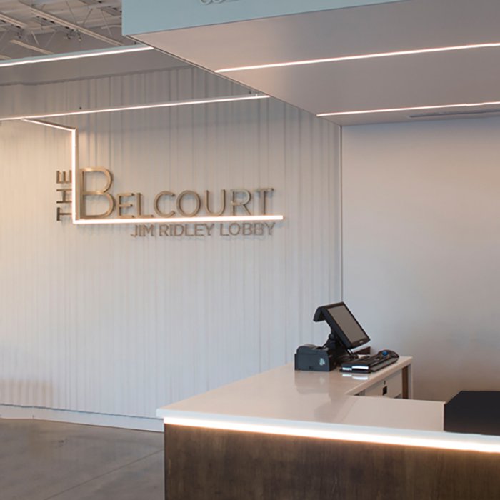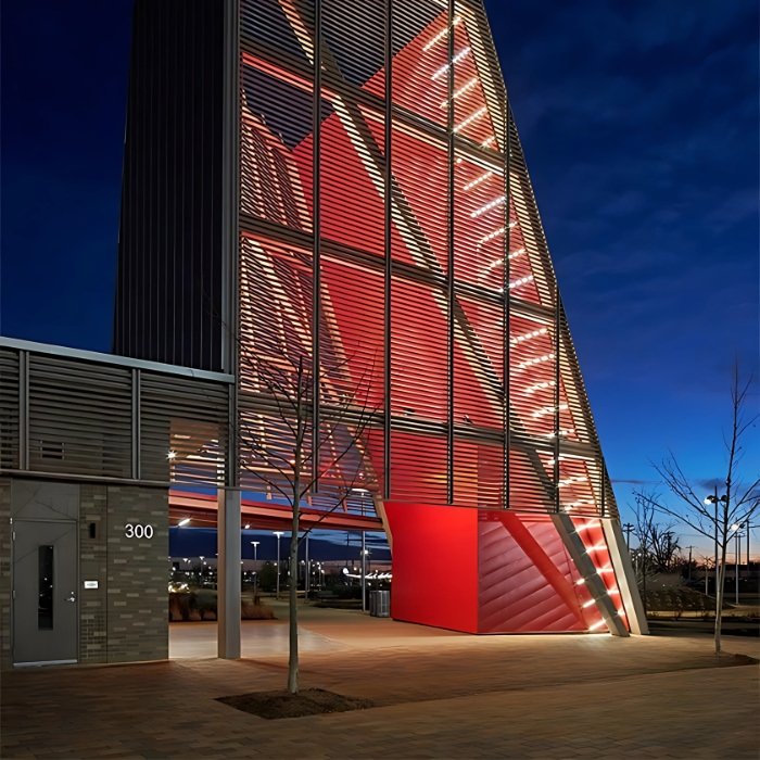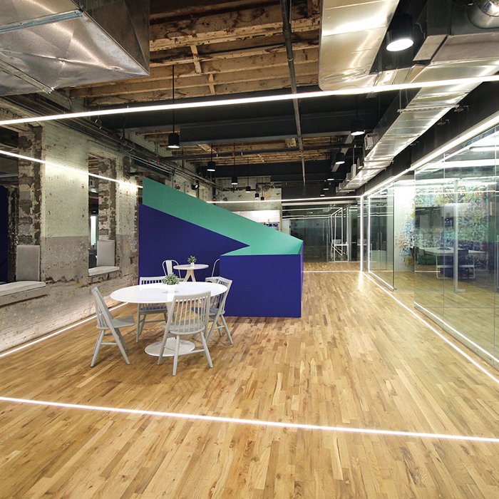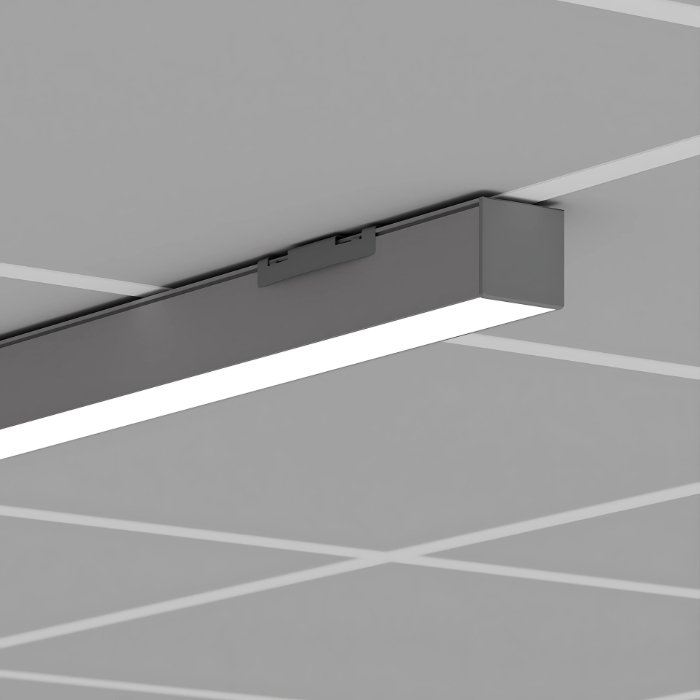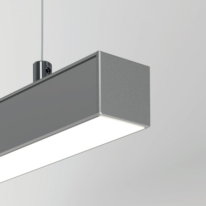 - Lineare Beleuchtung mit polygonalen Formen - in Form einer abgehängten oder aufgesetzten leistungsstarken Leuchte.