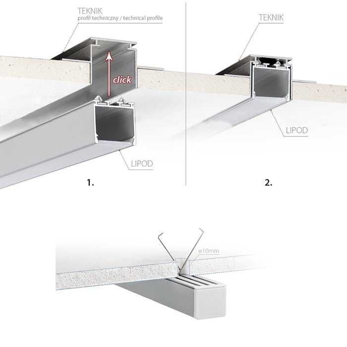Das universale LED-Profil mit mehreren Verwendungsmöglichkeiten und der Bezeichnung KLUŚ LIPOD ist ein in der EU gefertigtes Aluminiumprodukt. Die Entwicklungs- und Produktabteilung der Firma KLUŚ legt großen Wert darauf, dass seine Funktion, die technische Verarbeitung und das Produktdesign ein harmonisches Ganzes bilden. Das ALU-Profil für LED-Streifen LIPOD eignet sich für die Fertigung einer kompakten Beleuchtung in professioneller Qualität und in einem minimalistischen architektonischen Stil in kleinen Serien oder als Einzelanfertigung.