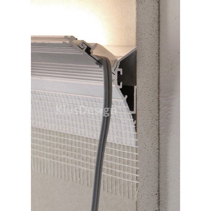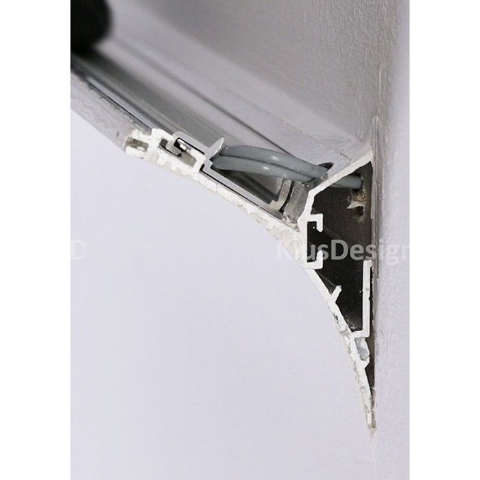 - Der Hohlraum / die Vertiefung an der Rückseite der Leiste für eine verdeckte Führung der Versorgungskabel und Stromleitungen ist ein Vorteil bei umfangreichen Beleuchtungsprojekten.