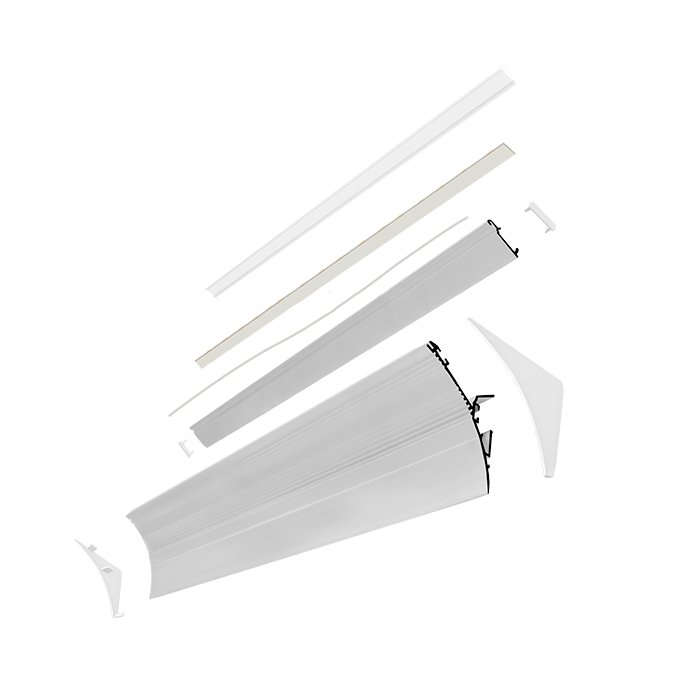 Zu den Vorzügen des Produkts gehören mit Blick auf dessen Maße seine hohe mechanische Steifigkeit und Wärmeleitfähigkeit. Die qualitativ hochwertige und robuste Aluminiumlegierung leitet die Wärme aus dem LED-Streifen effektiv ab und sorgt so für dessen optimale Betriebstemperatur und verlängert seine Lebensdauer. Das breite entsprechende Angebot an Zubehör dient zum Erzielen erstklassiger Lichteigenschaften mit der Möglichkeit der Montage als: