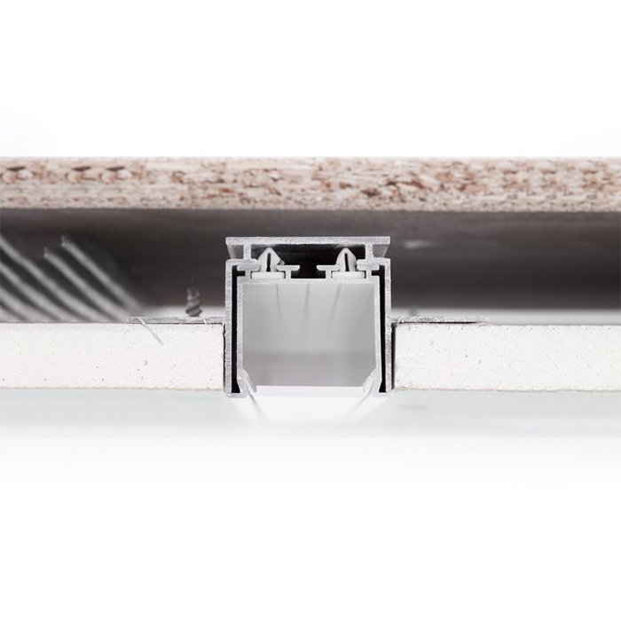 - Einbau zwischen Rigipsplatten - das Profil wird beim Bau einer abgehängten Rigipsdecke zwischen den Gipskartonplatten montiert.