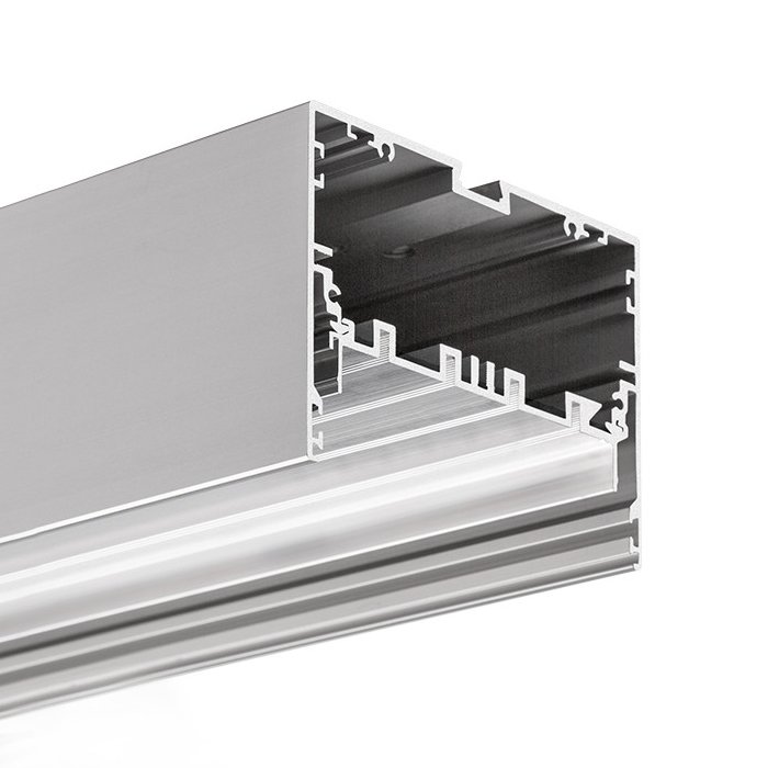 Wenn Sie nach einer Möglichkeit suchen, eine äußerst leistungsstarke Deckenbeleuchtung mit LED-Streifen in Form einer aufgehängten linearen Leuchte zu schaffen, dann kann das Alu-Profil MOOD-100 eine ideale Alternative für Sie sein. Es sorgt für eine kompakte ästhetische Optik und hervorragende Lichteigenschaften je nach Konfiguration der Leuchte. Das Produktdesign prädestiniert es für eine Verwendung als: