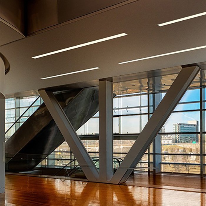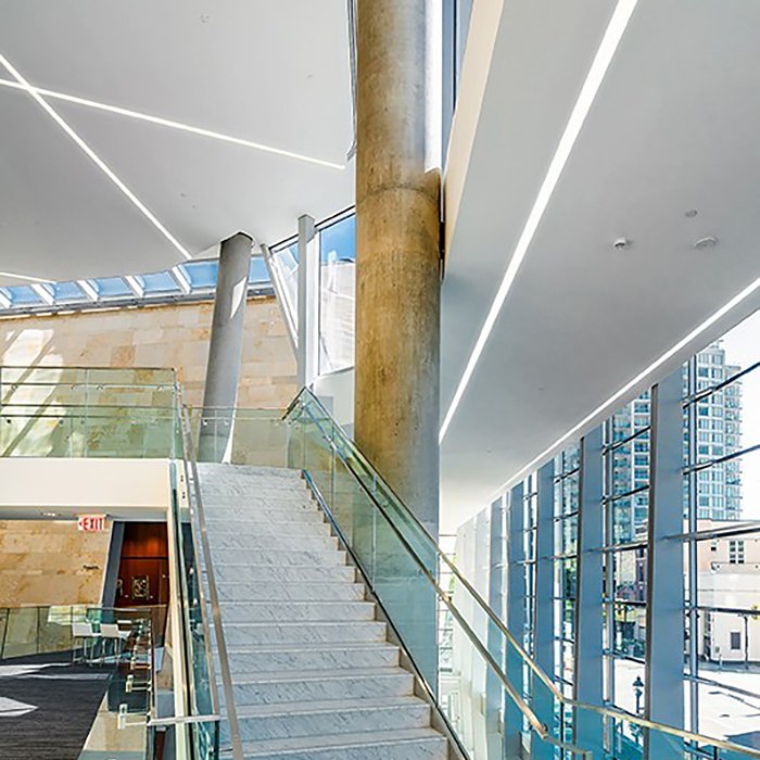Wenn Sie nach einer Möglichkeit suchen, eine robuste und leistungsstarke Beleuchtung mit LED-Streifen in einer abgehängten Trockenbaudecke zu schaffen, dann kann das Alu-Profil OMODO-100 eine ideale Alternative für Sie sein. Es sorgt für eine kompakte ästhetische Optik und hervorragende Lichteigenschaften je nach Konfiguration der Leuchte. Das Produktdesign prädestiniert es für eine Verwendung als: