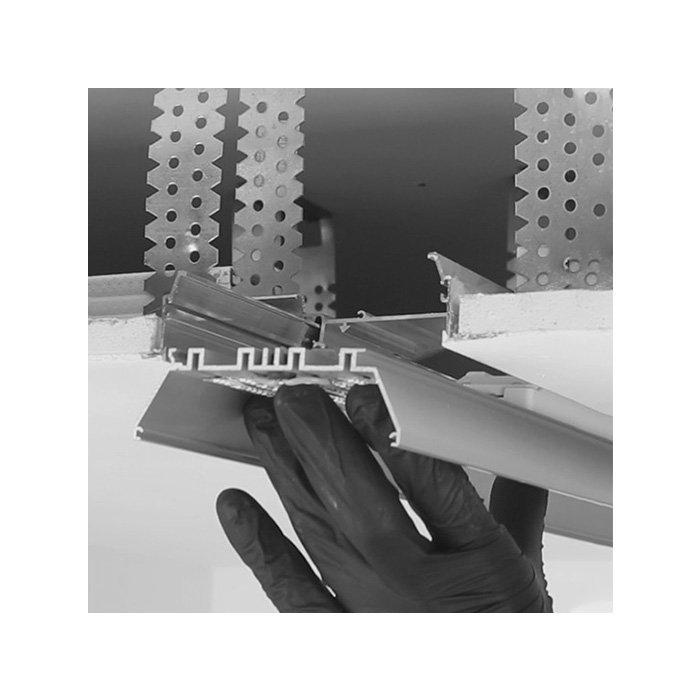 - Die Verbindung des Beleuchtungsprofils mit dem Montageteil bietet professionelle Lösungen und ermöglicht, den Beleuchtungsteil vom Montageprofil abzutrennen und anschließend leicht wieder zurückzusetzen.