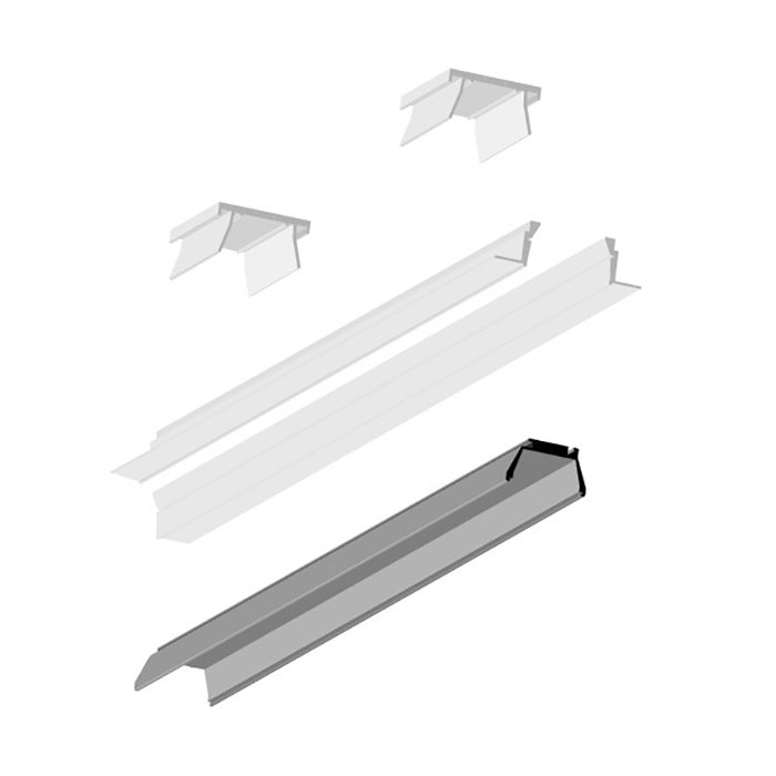 Es handelt sich um eine professionelle Lösung, die Komplexität, Robustheit und ein perfektes Produktdesign für die Beleuchtung einer Gipskartondecke bietet. Der einfache Zugang zu diesem System besteht in der Möglichkeit des Kaufs des ganzen Sets des Systems MOD-KOZE-50, des Systems MOD-TEK-50 oder des Systems MOD-KOL-50. Ein Set umfasst alle unten aufgeführten Komponenten, die für 1 lfd. Meter einer Leuchte benötigt werden. Wenn Sie sich entscheiden, eine Lösung individuell zusammenzustellen, werden Sie diese Teile benötigen:
