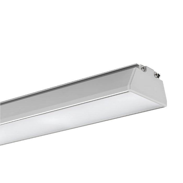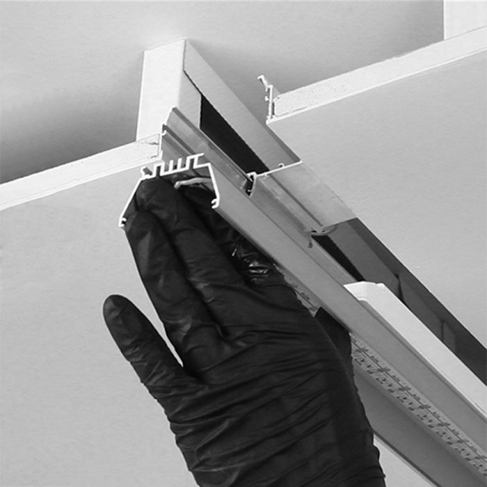 - Das LED-Einbauprofil für abgehängte Decken OMODO-50 reicht mit seiner Tiefe in das Raster (die Konstruktion) der Decke hinein.