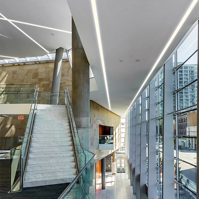 Wenn Sie nach einer Möglichkeit suchen, eine robuste und leistungsstarke Beleuchtung mit LED-Streifen in einer abgehängten Trockenbaudecke zu schaffen, dann kann das Alu-Profil OMODO-50 eine ideale Alternative für Sie sein. Es sorgt für eine kompakte ästhetische Optik und hervorragende Lichteigenschaften je nach Konfiguration der Leuchte. Das Produktdesign prädestiniert es für eine Verwendung als: