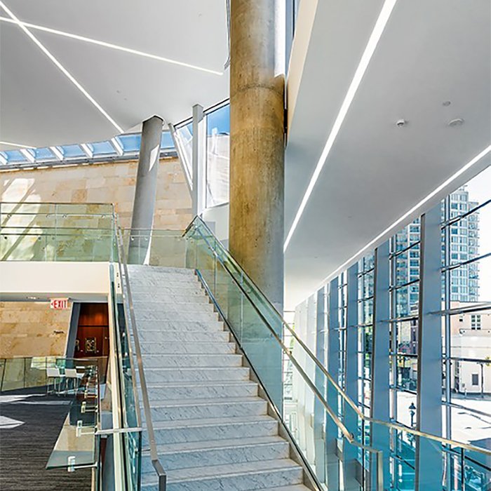 - Hochentwickelte und robuste Lösung mit der Möglichkeit der Unterbringung der Versorgungsquelle oder der Steuerungselektronik in einer abgehängten Decke.