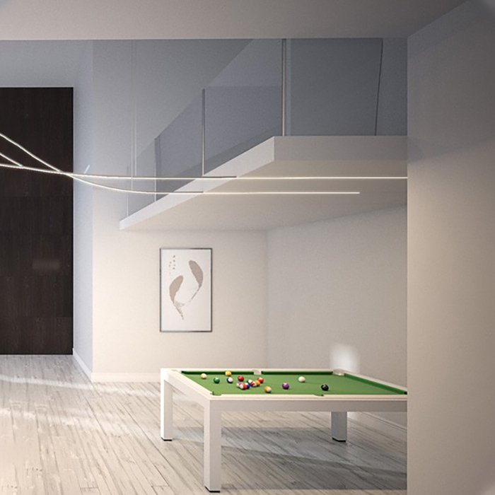 - Deckenbeleuchtung einer abgehängten Decke - einzigartige Möglichkeit des Übergangs der Lichtlinie vom Rigips in den freien Raum.