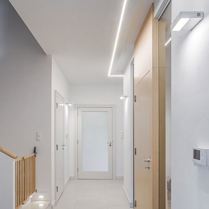 Zu den Vorzügen des Produkts gehören mit Blick auf dessen kompakte Maße seine glatte Außenoberfläche, die hohe mechanische Steifigkeit und Wärmeleitfähigkeit. Eine einzigartige Eigenschaft ist die Möglichkeit des Durchbiegens und Biegens der Deckenleiste LED. Die qualitativ hochwertige Aluminiumlegierung leitet die Wärme aus dem LED-Streifen effektiv ab und sorgt so für dessen optimale Betriebstemperatur und verlängert seine Lebensdauer. Das breite entsprechende Angebot an Zubehör dient zum Erzielen erstklassiger Lichteigenschaften mit der Möglichkeit der Montage in Form des: