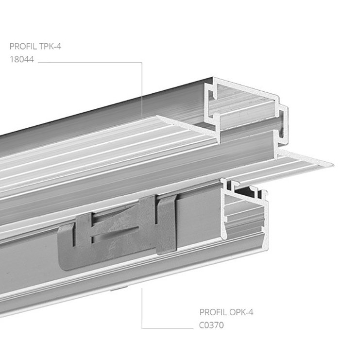 - Das Beleuchtungssystem besteht aus drei Teilen - 1/3 #tablink#profily#kompatible LED-Schiene## für Trockenbau | 2/3 Beleuchtungsleiste | 3/3 Profilhalterung PK-4.