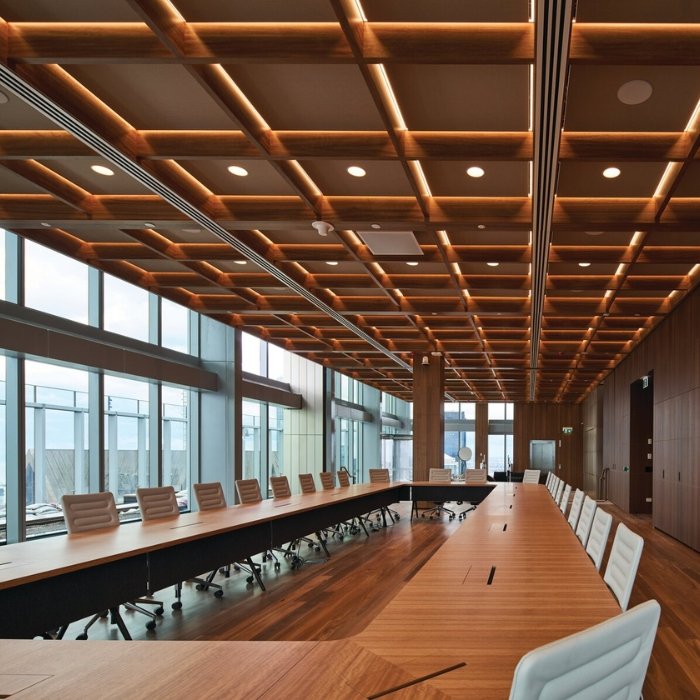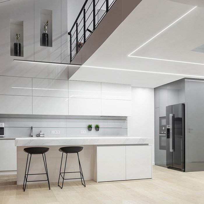 - Beleuchtung einer abgehängten Decke - einzigartige Möglichkeit des Übergangs der Lichtlinie vom Rigips in den freien Raum.