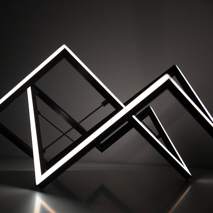 - Lineare Beleuchtung mit polygonalen Formen - in Form einer abgehängten oder aufgesetzten dekorativen oder Zusatzleuchte.