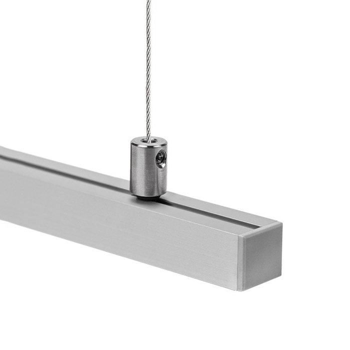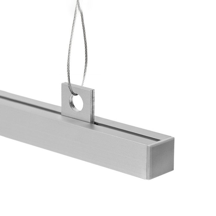 - Aufhängens oder Abhängens von einer Decke in horizontaler Richtung - die LED-Hängeleiste kann mithilfe von speziellem Montagezubehör - eines Stahlseils oder eines Edelstahl-/Aluminiumstabs aufgehängt und versorgt (DC 12 V/24 V) werden.
