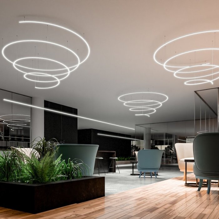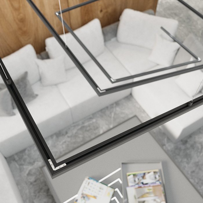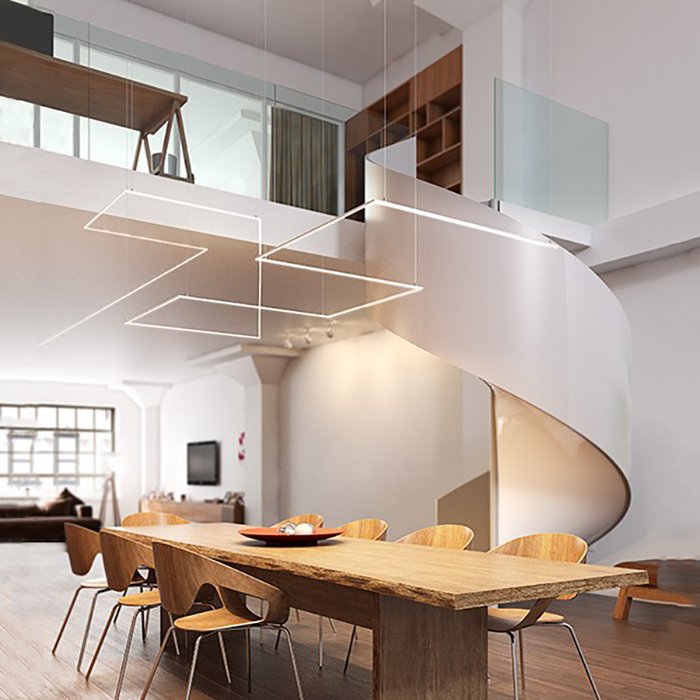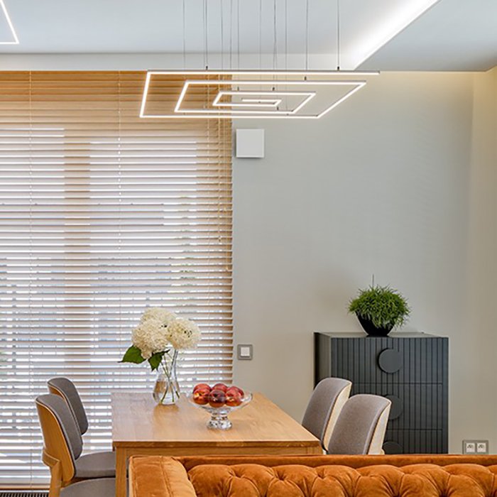 - Lineare Beleuchtung mit polygonalen Formen - in Form einer abgehängten oder aufgesetzten dekorativen oder Zusatzleuchte.
