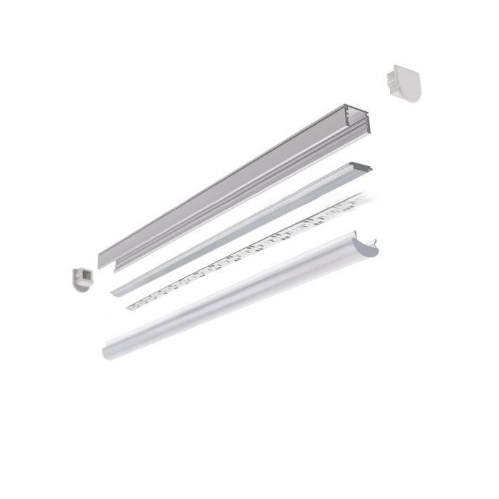 Zu den Vorzügen des Produkts gehören mit Blick auf dessen kompakte Maße seine hohe mechanische Steifigkeit und Wärmeleitfähigkeit. Die qualitativ hochwertige Aluminiumlegierung leitet die Wärme aus dem LED-Streifen effektiv ab und sorgt so für dessen optimale Betriebstemperatur und verlängert seine Lebensdauer. Das breite entsprechende Angebot an Zubehör dient zum Erzielen erstklassiger Lichteigenschaften mit der Möglichkeit der Montage in Form des:
