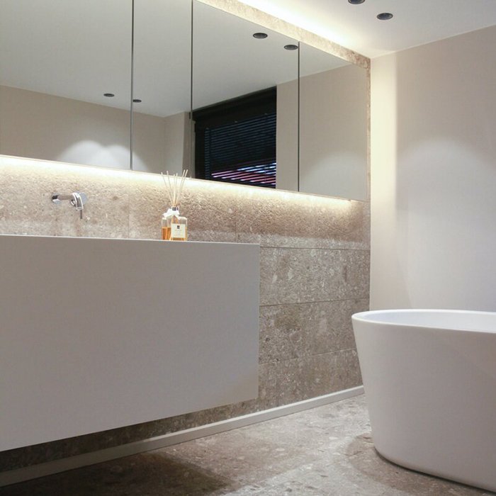 - Konstruktionsmäßig speziell angepasster Bereich für die Installation eines LED-Streifens einer Breite von bis zu 16 mm.