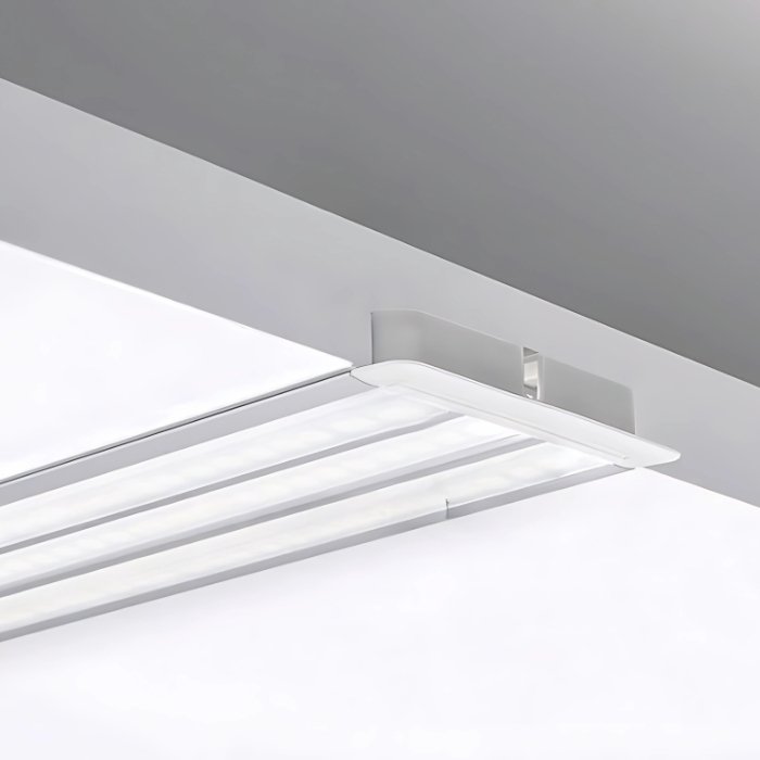 - Die Endkappen werden seitlich auf das LED-Aufhängeprofil aufgesetzt. Die LED-Abdeckung wird von vorn in das Profil gedrückt.