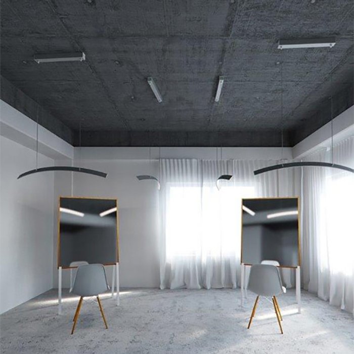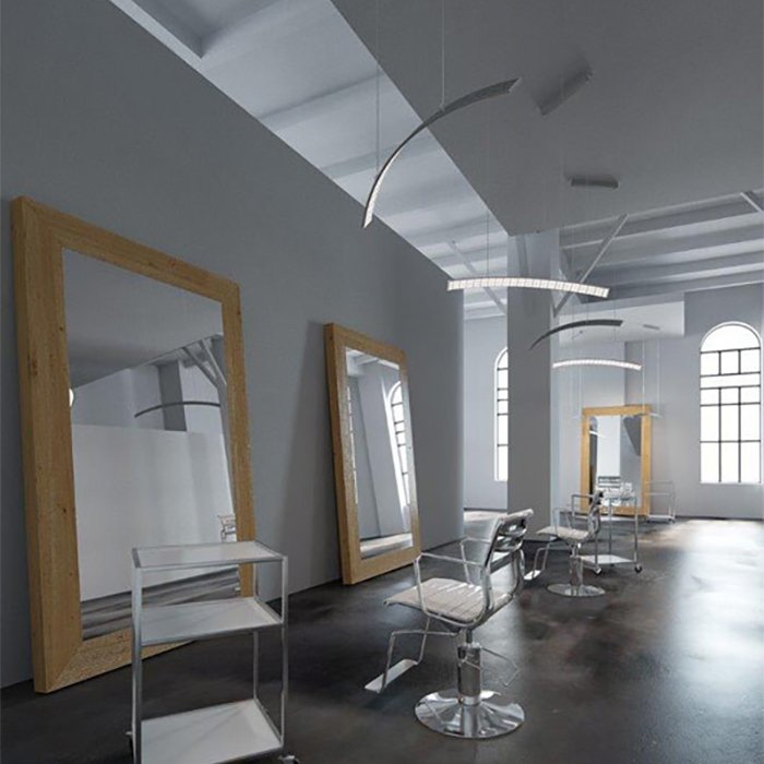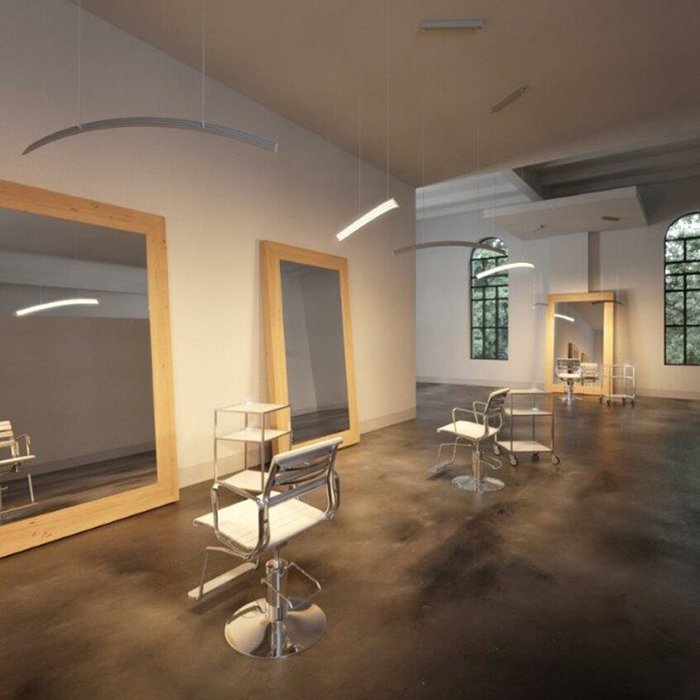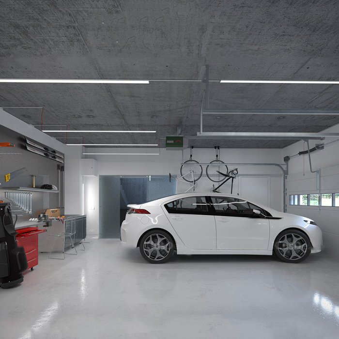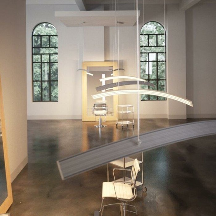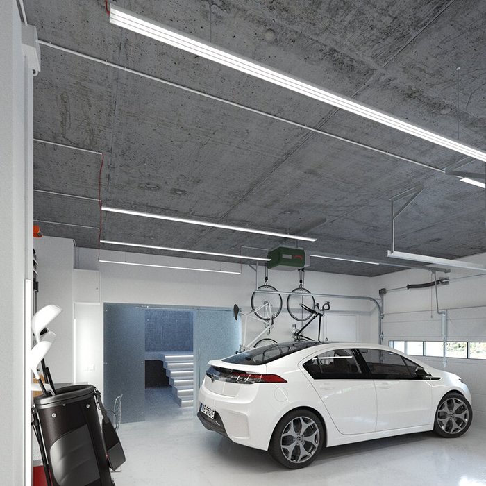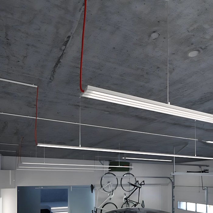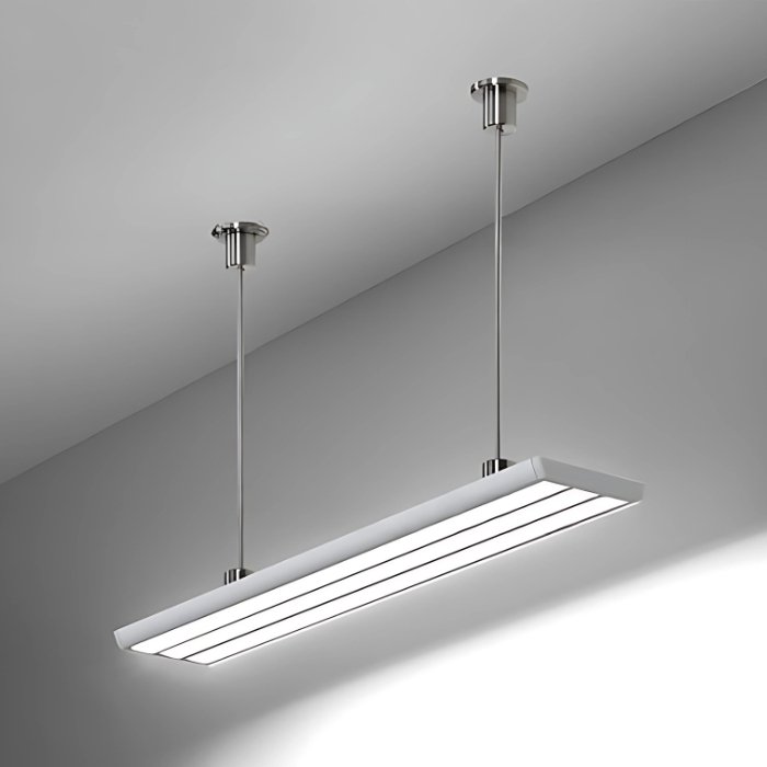 - Lineare Beleuchtung mit polygonalen Formen - in Form einer abgehängten oder aufgesetzten leistungsstarken Leuchte.