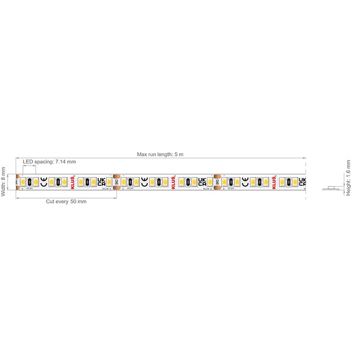 LED Streifen KLUŚ K-CR-0960-24 9,6W/m 140LED/m CRI95+