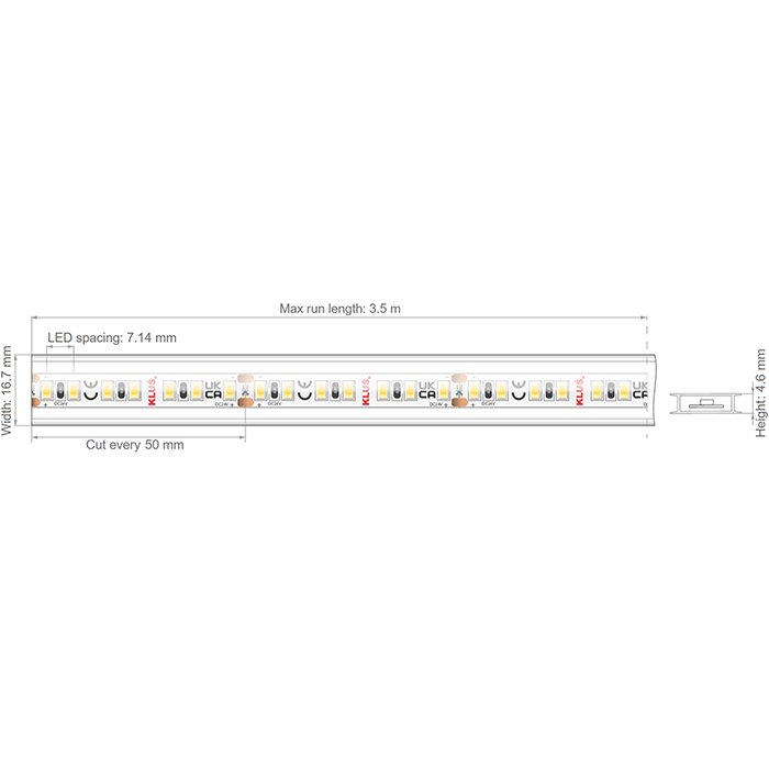 LED Streifen KLUŚ KWP-14KCR-1440-24 14,4W/m 140LED/m CRI95+ IP65 KLIK