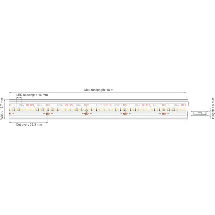 LED Streifen KLUŚ KWP-14KHD-0480-24 4,8W/m 240LED/m CRI90+ IP65 KLIK