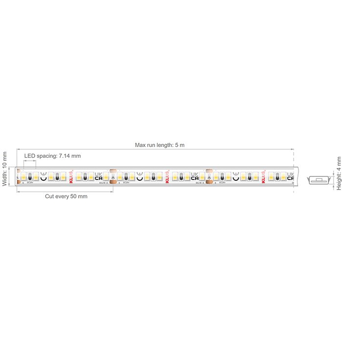 LED Streifen KLUŚ KWP-8KCR-0960-24 9,6W/m 140LED/m CRI95+ IP65 KLIK