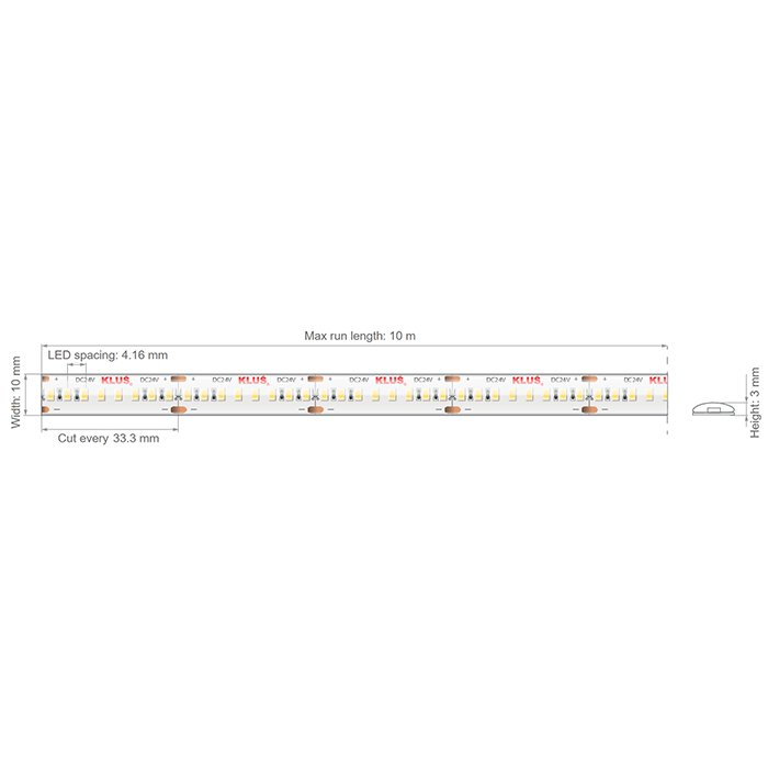 LED Streifen KLUŚ KWP-GHD-0480-24 4,8W/m 240LED/m CRI90+ IP65
