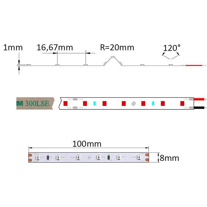Ergänzende technische Eigenschaften des roten 24V LED-Streifens SC2460E