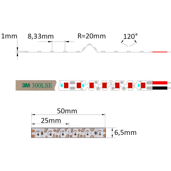 Ergänzende technische Eigenschaften für den Zick-Zack LED-Streifen rot 12V SC12120E