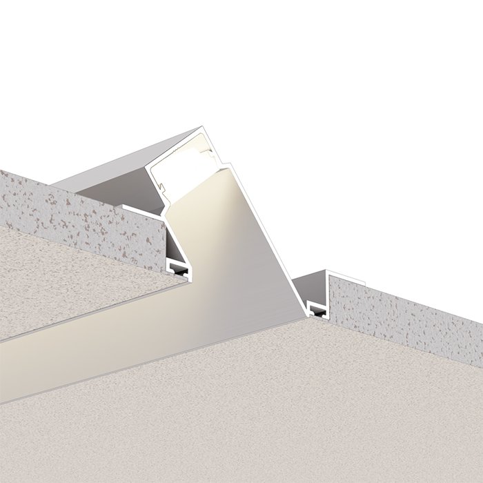- Spezielles Produktdesign für eine Deckenbeleuchtung einer Wand unter einem Winkel von 30 Grad / 50 Grad - je nach Oberfläche der abgehängten Gipskartondecke.