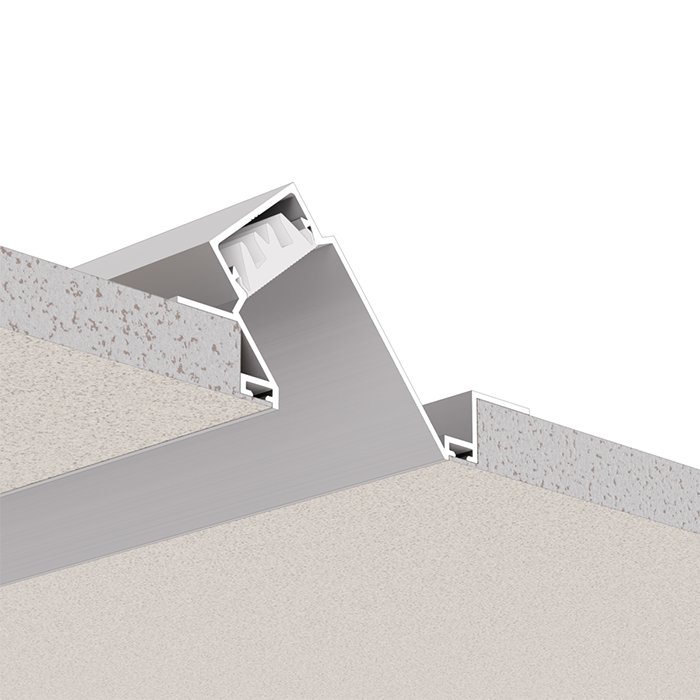 Wenn Sie nach einer Möglichkeit suchen, eine Beleuchtung an einer abgehängten Decke mit einem LED-Streifen vom Typ Wallwasher zu schaffen, dann kann das Alu-Profil DIPOKET eine ideale Alternative für Sie sein. Es sorgt für eine kompakte ästhetische Optik und hervorragende Lichteigenschaften je nach Konfiguration der Leuchte. Das Produktdesign prädestiniert es für eine Verwendung als: